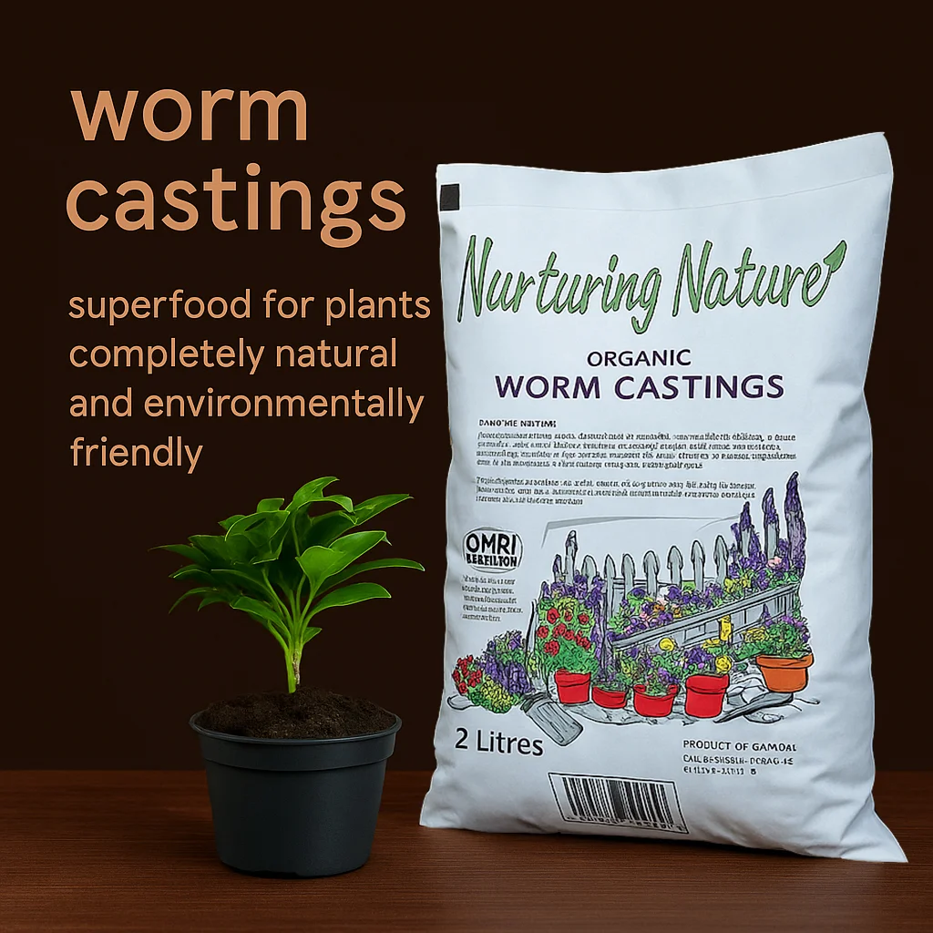 A safe and eco-friendly fertilizer made from red wigglers, ideal for vegetables, fruits, flowers, and indoor plants – gentle on roots and free from chemicals.